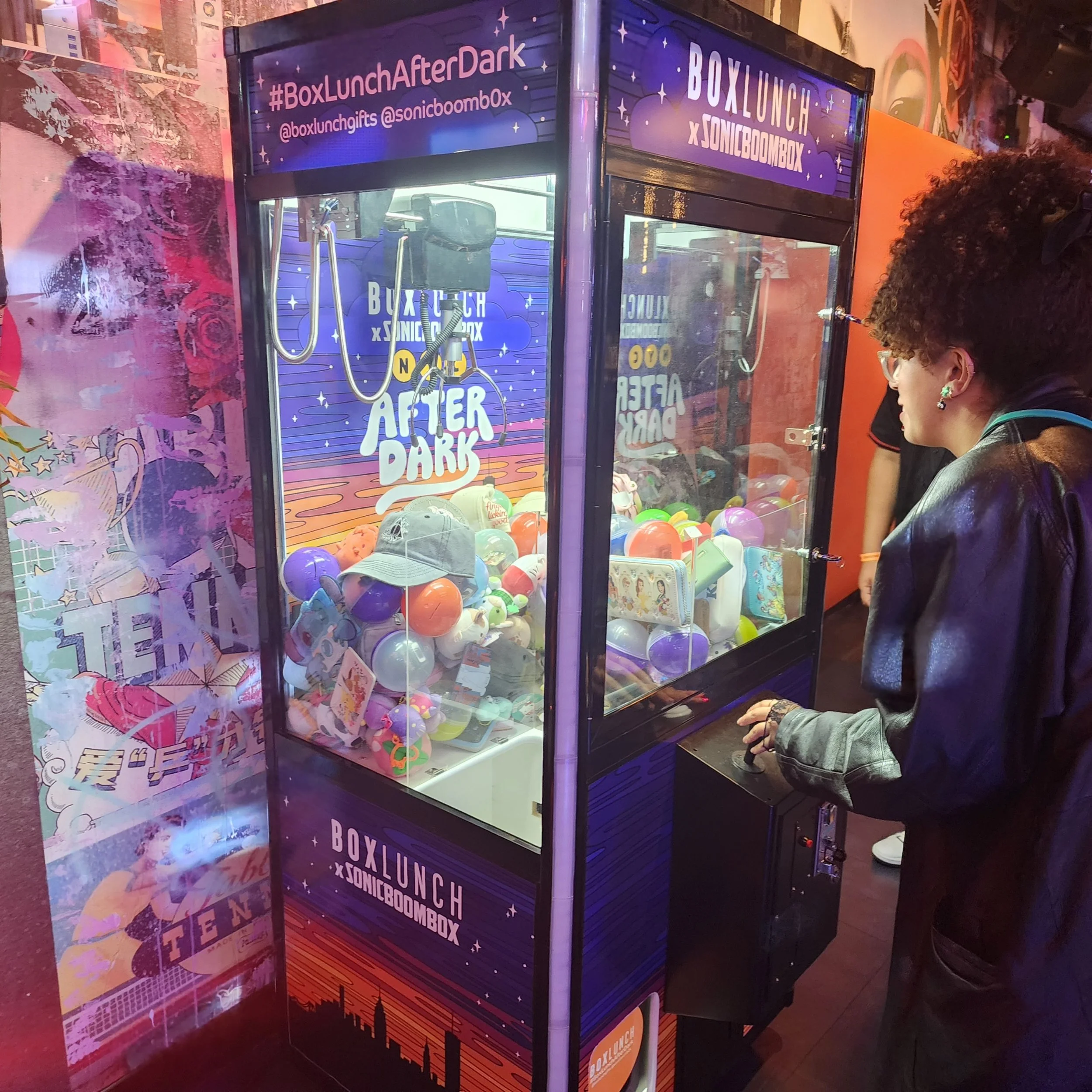 From digital assets for TVs that were animated by the Boxlunch team, to fully designing a claw machine, coasters, decals, postcards, signage and more.